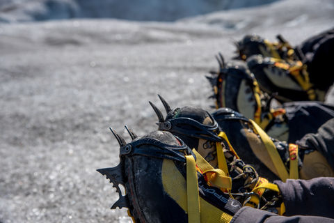 Once our local boat driver drops us off and after a bit of a walk to get to the edge of the ice your qualified guide will introduce you to your safety equipment. This includes helmets and crampons.